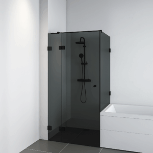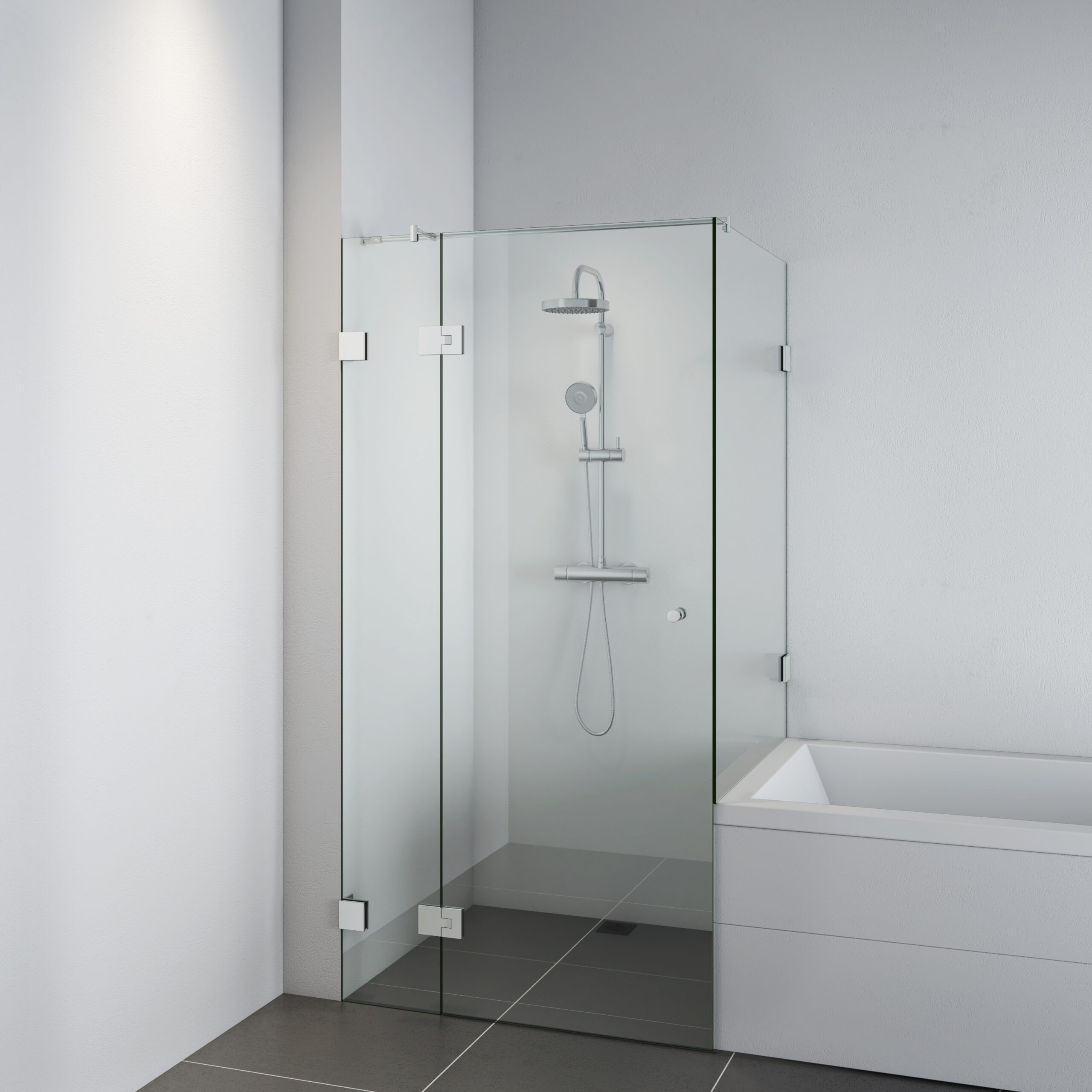 Douchecabine Lucca wordt volledig naar wens samengesteld, zodat je een moderne en ruimtelijke doucheruimte naast je bad creëert. Jij bepaalt zelf de afmetingen, de gewenste glassoort en de kleur van het beslag, zodat de cabine precies aansluit bij jouw badkamerstijl. De deur draait soepel op twee duurzame scharnieren aan de zijwand en krijgt de deuropener die jij kiest.