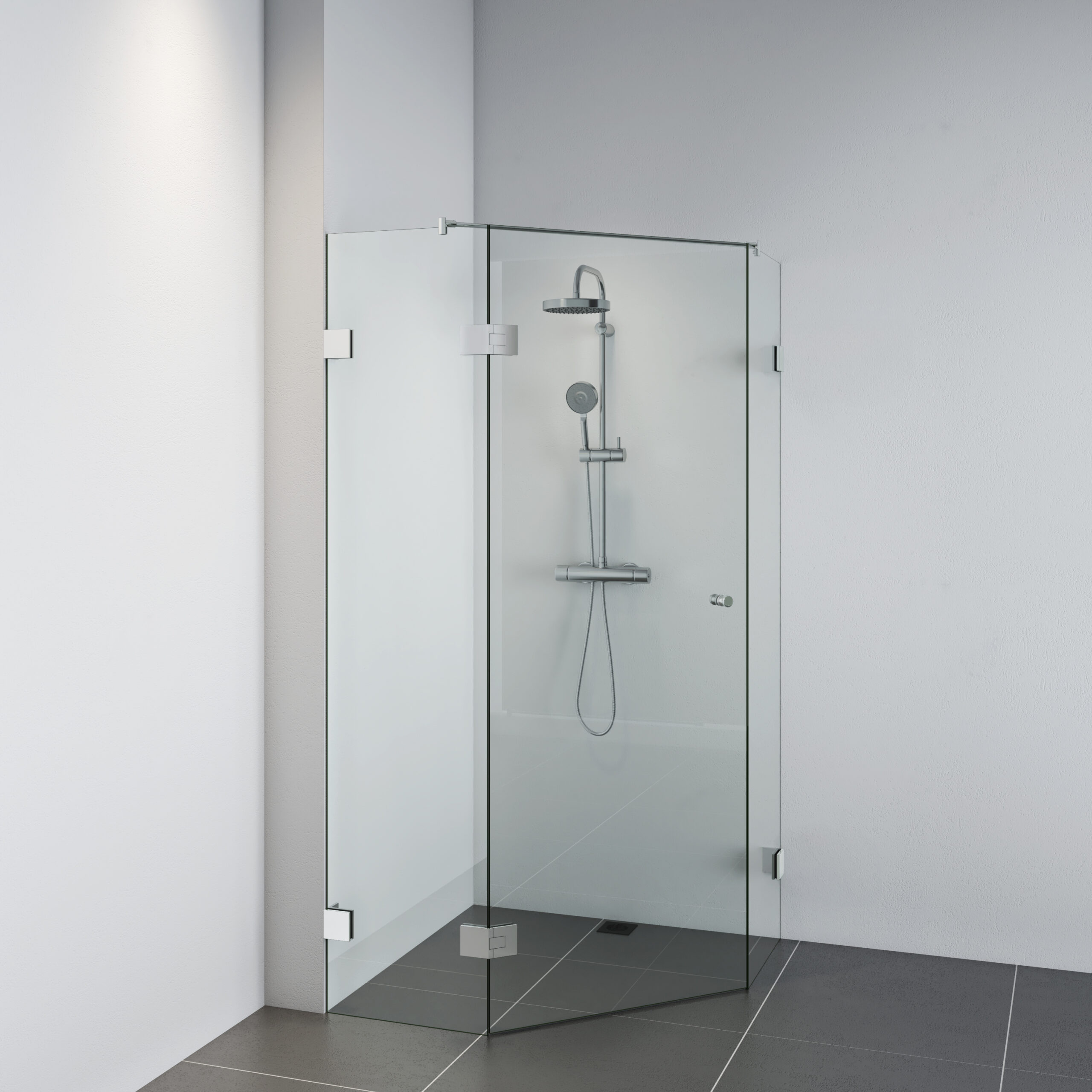 Douchecabine Ragusa is een mooie oplossing wanneer je een nette douchecabine wilt creëren. De cabine wordt volledig op maat samengesteld, zodat je zelf de afmetingen, de glassoort en de kleur van het beslag kiest en de opstelling precies past bij jouw badkamer. De deur draait soepel op glas-glas scharnieren en wordt afgewerkt met een deuropener die je naar eigen wens selecteert.