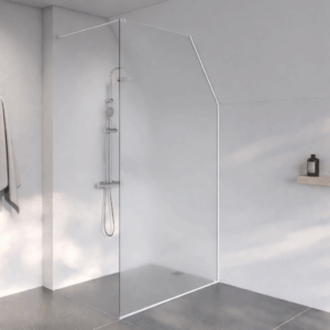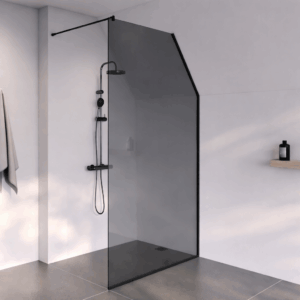Douchewand Novara is een slimme oplossing voor badkamers met een schuin dak. Deze opstelling bestaat uit een vast glazen paneel dat nauwkeurig wordt aangepast aan de schuine lijn van het plafond, waardoor de ruimte optimaal benut wordt en een strak geheel ontstaat.